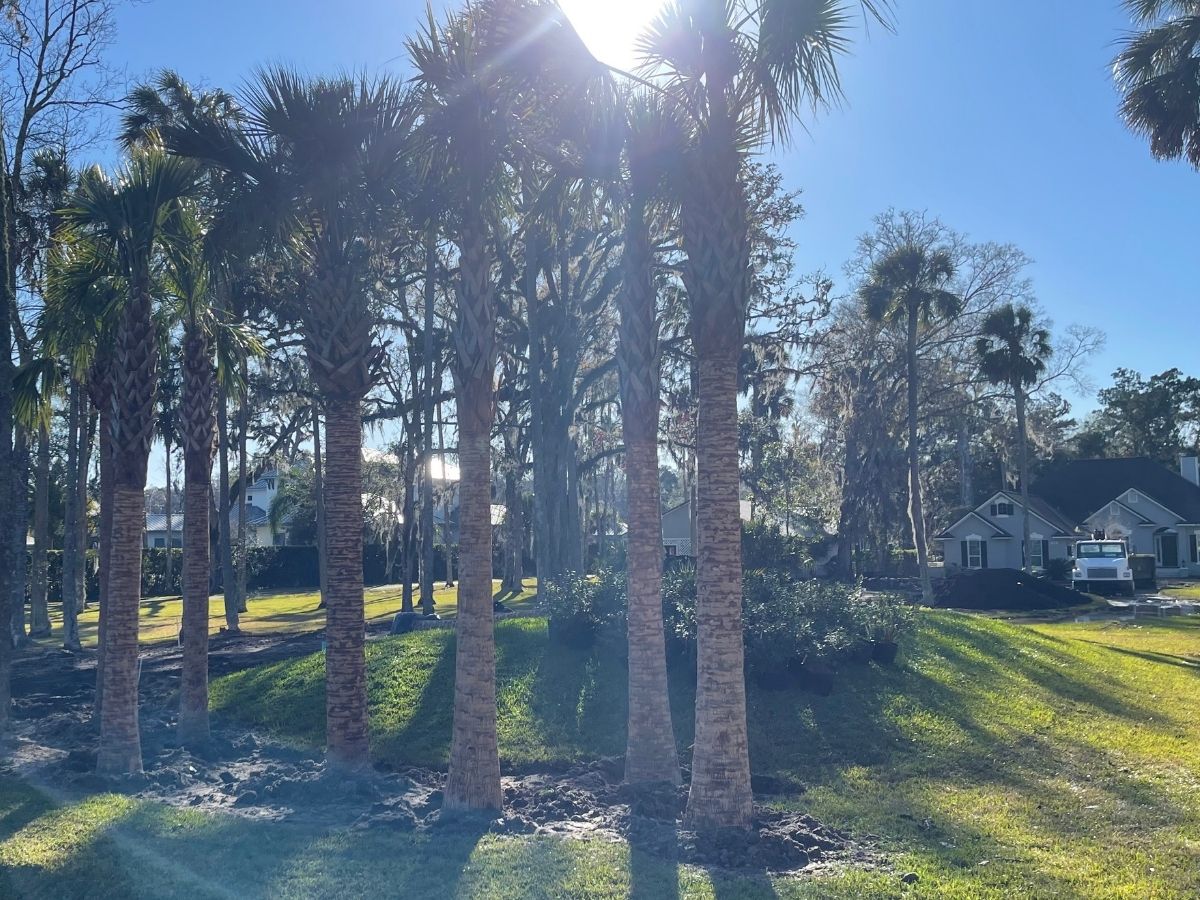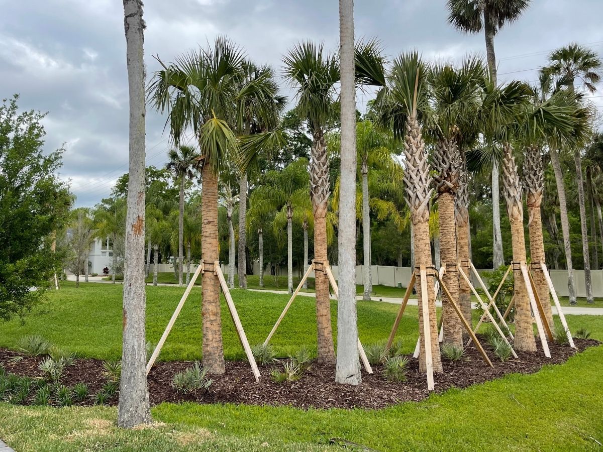Created a statement entrance using native Sabal palms and oak trees to establish a strong, natural first impression.